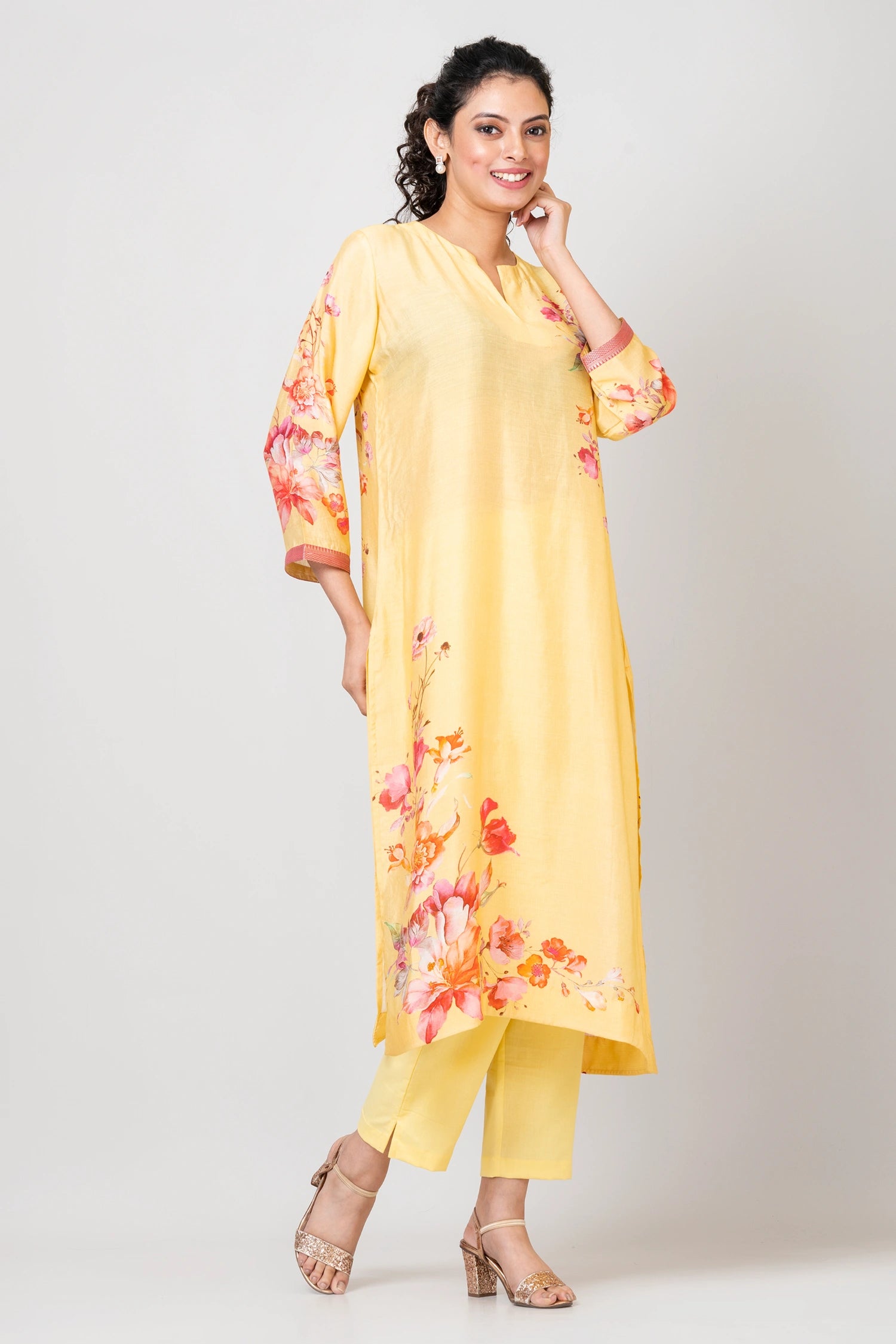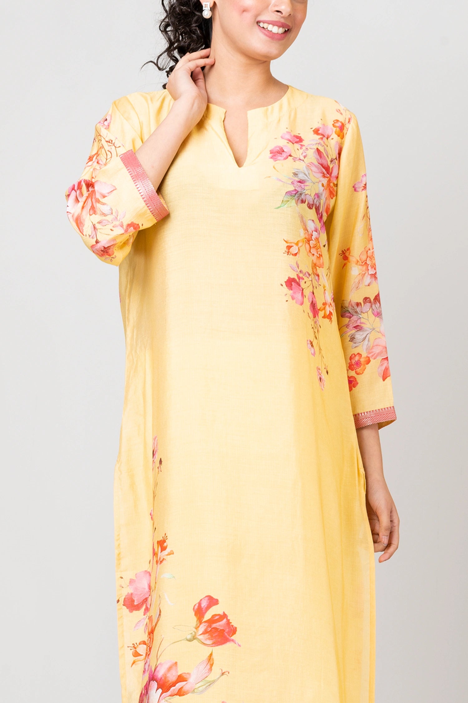 Pattern and print: Indulge in the timeless beauty of our floral print kurta, where the delicate blooms paint a picture of elegance and charm in every stitch.