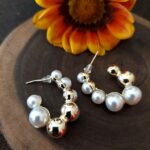With its half-circle form and simple white pearl beads accented by gold beads, the earring is sleek and classic. Wear and flaunt this timeless accessory with your favorite outfit.
