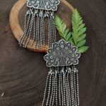 Long earring in the traditional style complement your attractiveness and showcase the charm of traditional fashion. This piece is oxidized and has a large cluster of hanging oxidized beads that give it height. A fashionable yet traditional earring that may be worn and styled with both traditional and indo-western attire.