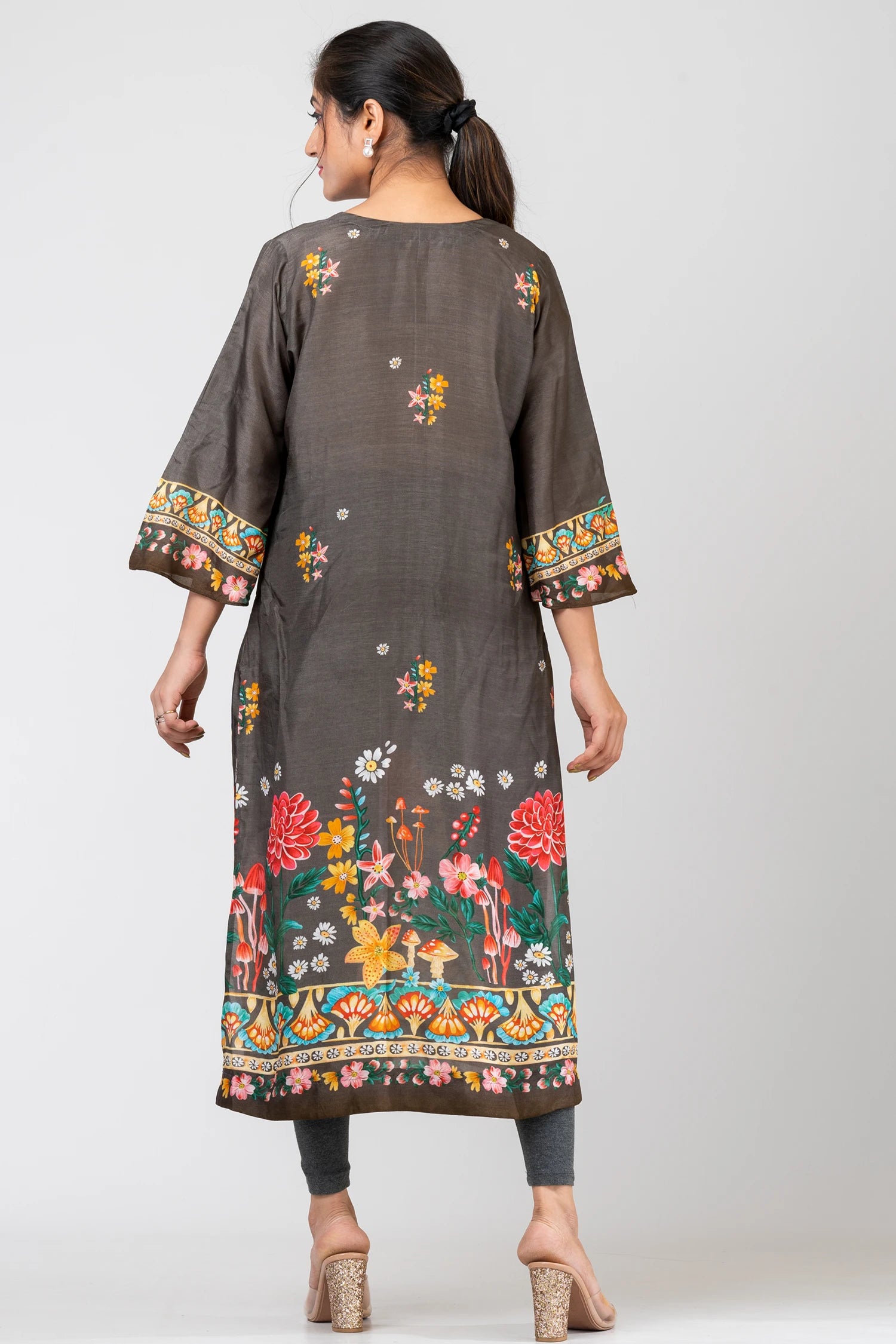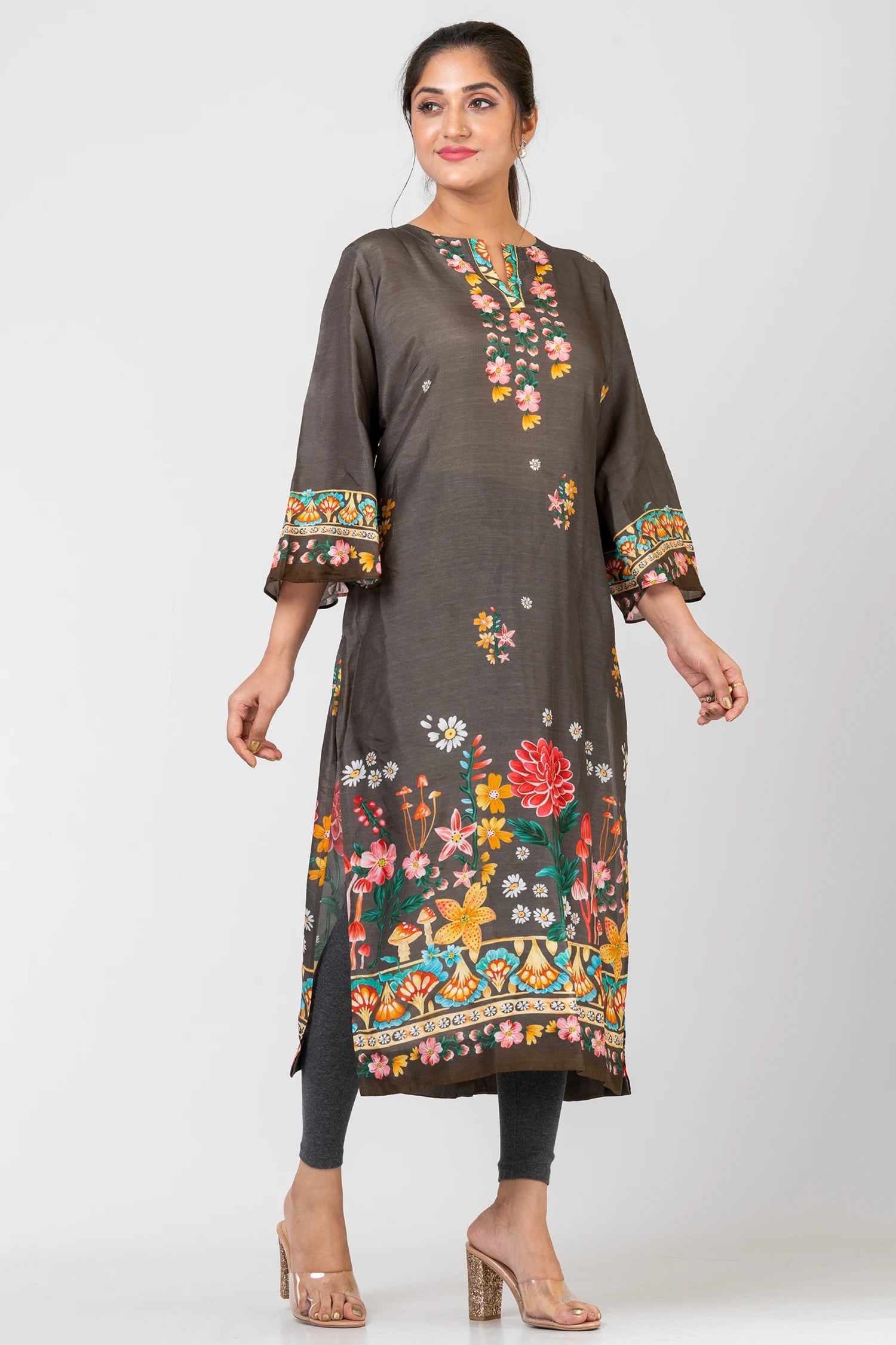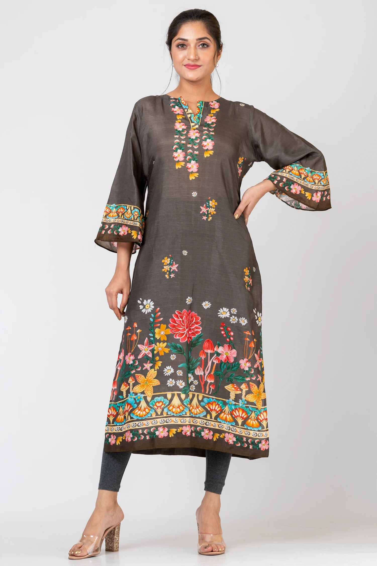 Pattern and print: Celebrate the vivacity of our kurta featuring a bright floral print, where lively colors and patterns illuminate your style with charm and elegance in one captivating ensemble.