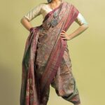 The Tussar silk saree flowed gracefully around feminine curves, falling smoothly and softly. The zari motifs done all over the saree give it a beautiful grand and royal appearance. Traditional Kalamkari digital prints adorn the entire saree, making it an epitome of lifelong artistry and heritage beauty. This saree stands out with its earthy tones, traditional kalamkari motifs. Drape this one-of-a-kind piece and flaunt it proudly to bring out the strong, royal beauty, and elegance of feminine beauty.